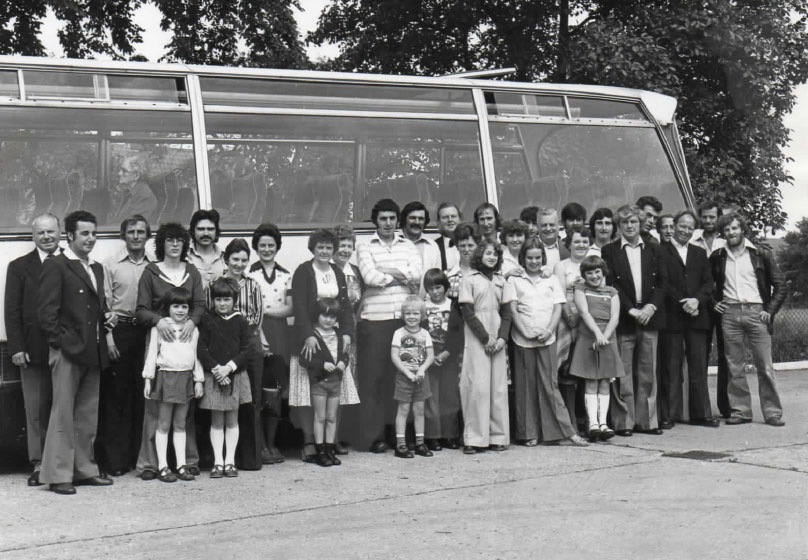 Front Row - Child Norris(?), Unknown lady, Martin Scase, Child Norris(?), Gavin Scase, Miss Nelhams, Debbie Sadler, Marie Plowright, Elizabeth Plowright. Unknown person on coach.
