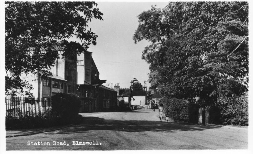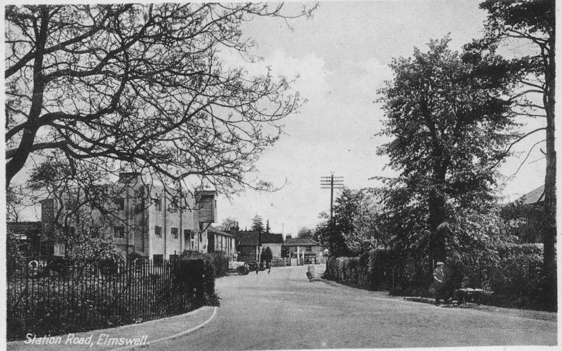 Station Road, 1925. We now have a motor car, and telephones; the Albatross Garage on the right, and another building beyond it; a low building at the back of the Fox yard; a structure between the vet's and the terrace.
