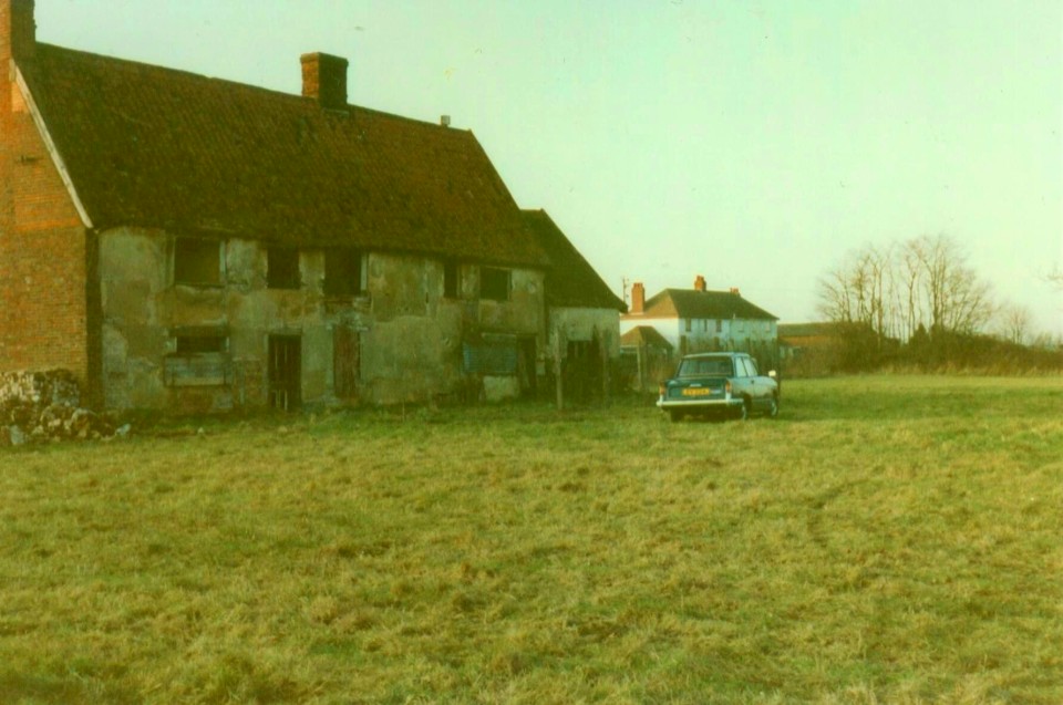 At one time the houses were known as Nos. 1 & 2 Hall Cottages, School Road; now they are Old Farm Cottage (on the left) and The Blooms, Farm Meadow. The single storey part to the right was enlarged to 2-storey when it was restored in 1984.