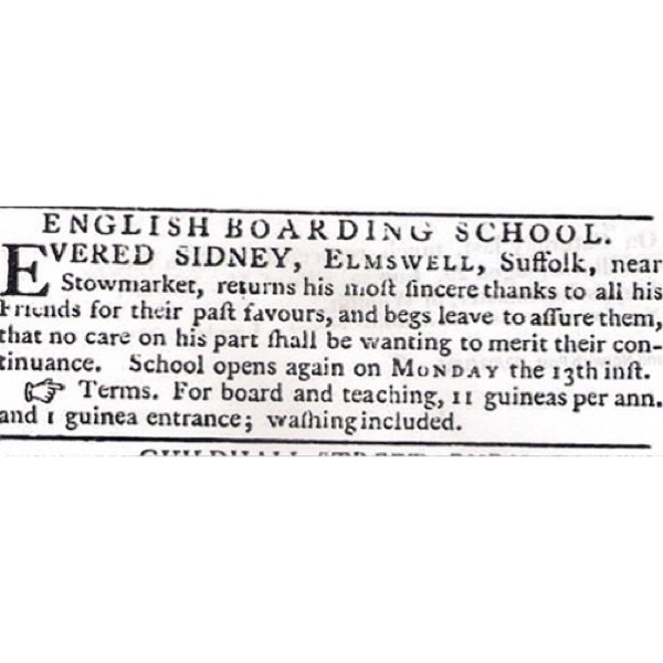 Mr Bone believes that the school transferred to Woolpit, where it appears to have been run by three successive generations of the Sidney family.