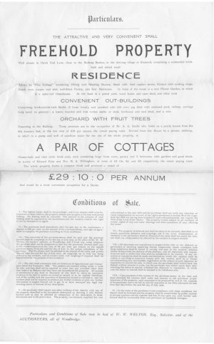 Vine Cottage is on the left, Vine House on the right, and a modern Orchard House at the back. Vine Cottage and two associated cottages were sold in 1913 when Arthur Smith (poultry dealer, 33), Mrs MaryAnn Willingham (school cleaner, 51) and Edward Pyke (blacksmith, 50) were in residence, but which were the two small cottages? Nethy Cottage might have been one, but more likely they have been demolished.