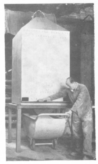 The bins were designed by Mr. Baker and the crane was modified to his specifi- cations. The bins, made of sheet steel, are 6ft 6in high and 3ft 5in square. For the system to be economic, they must have a turn round time of about two weeks. Delivery time is reduced too. Handling paper sacks one man is hard pushed to deliver 60 tons a week. In bins he can deliver 100 tons.