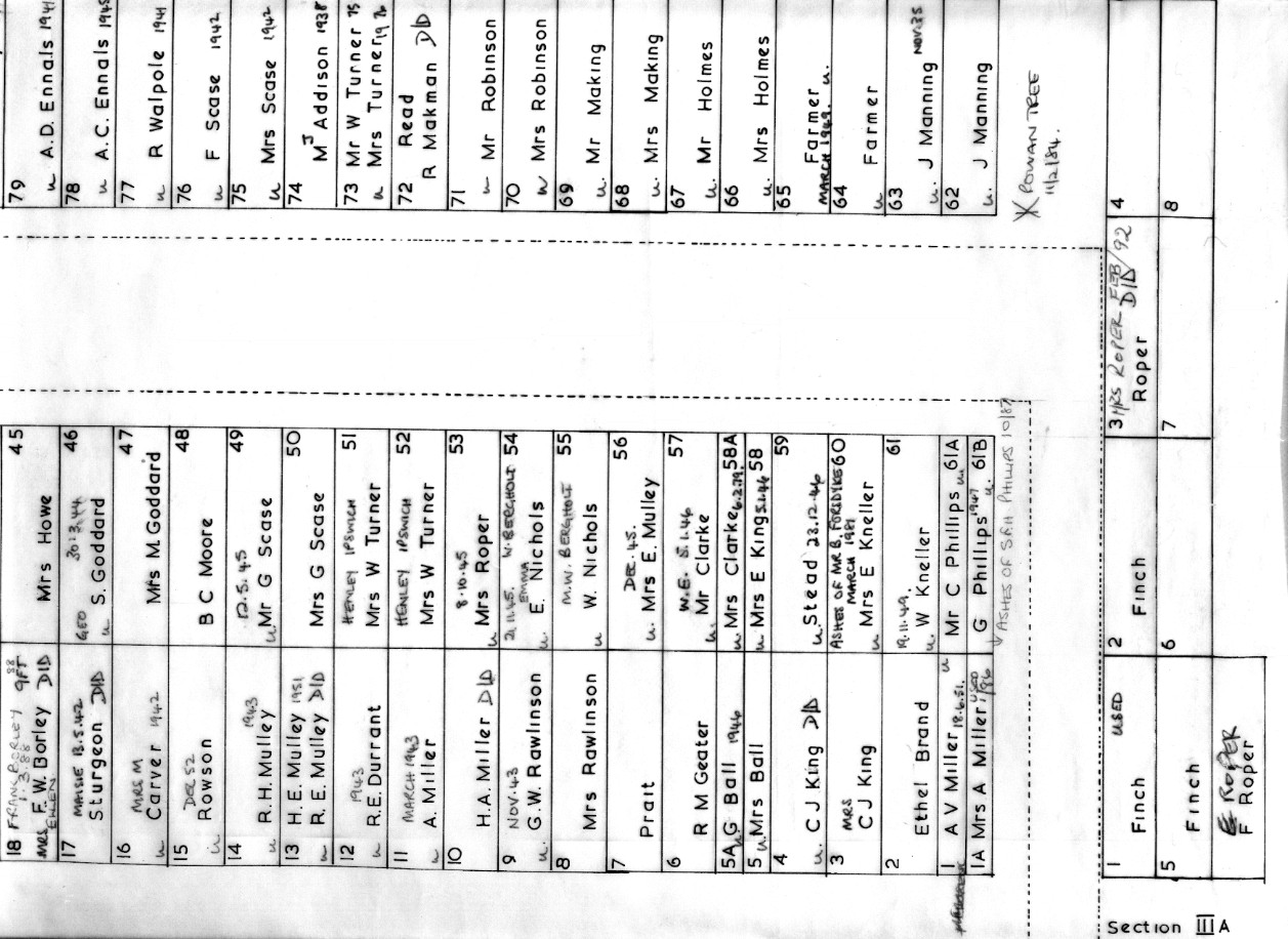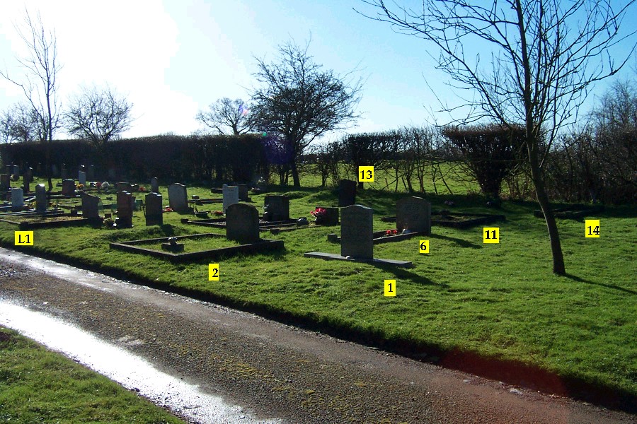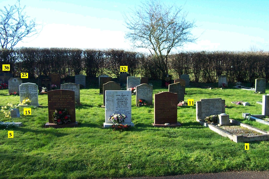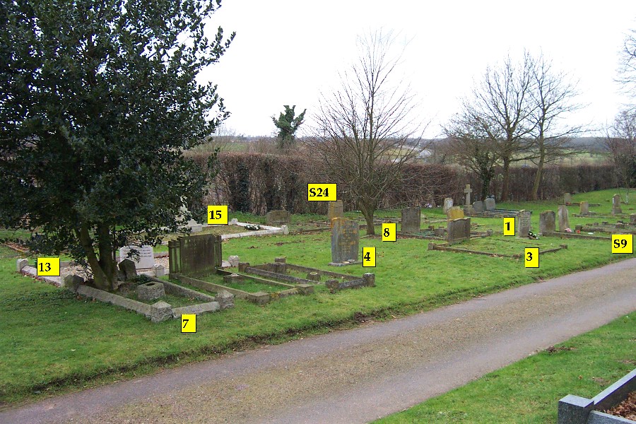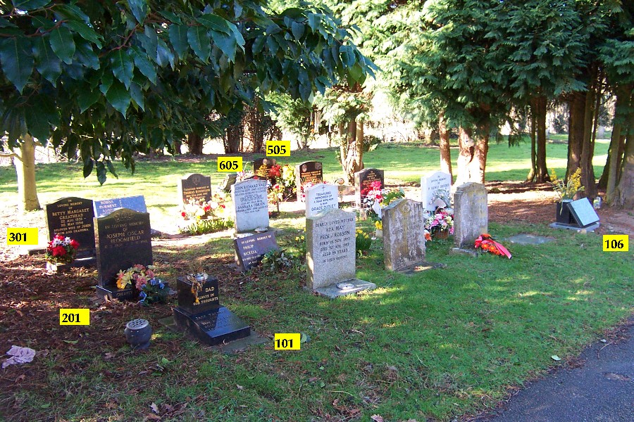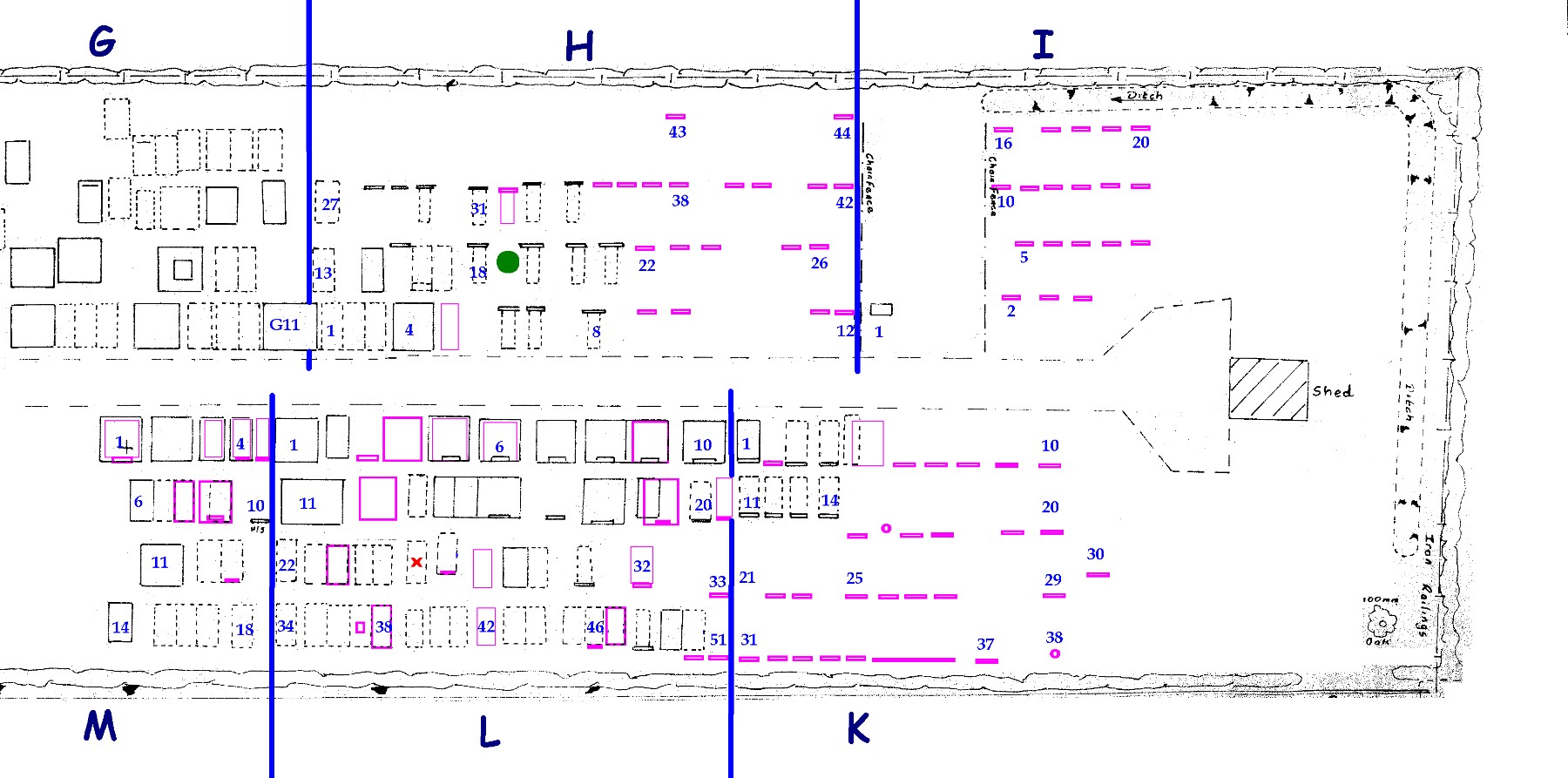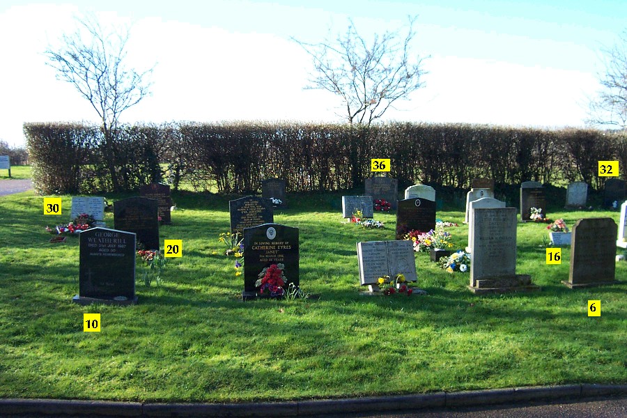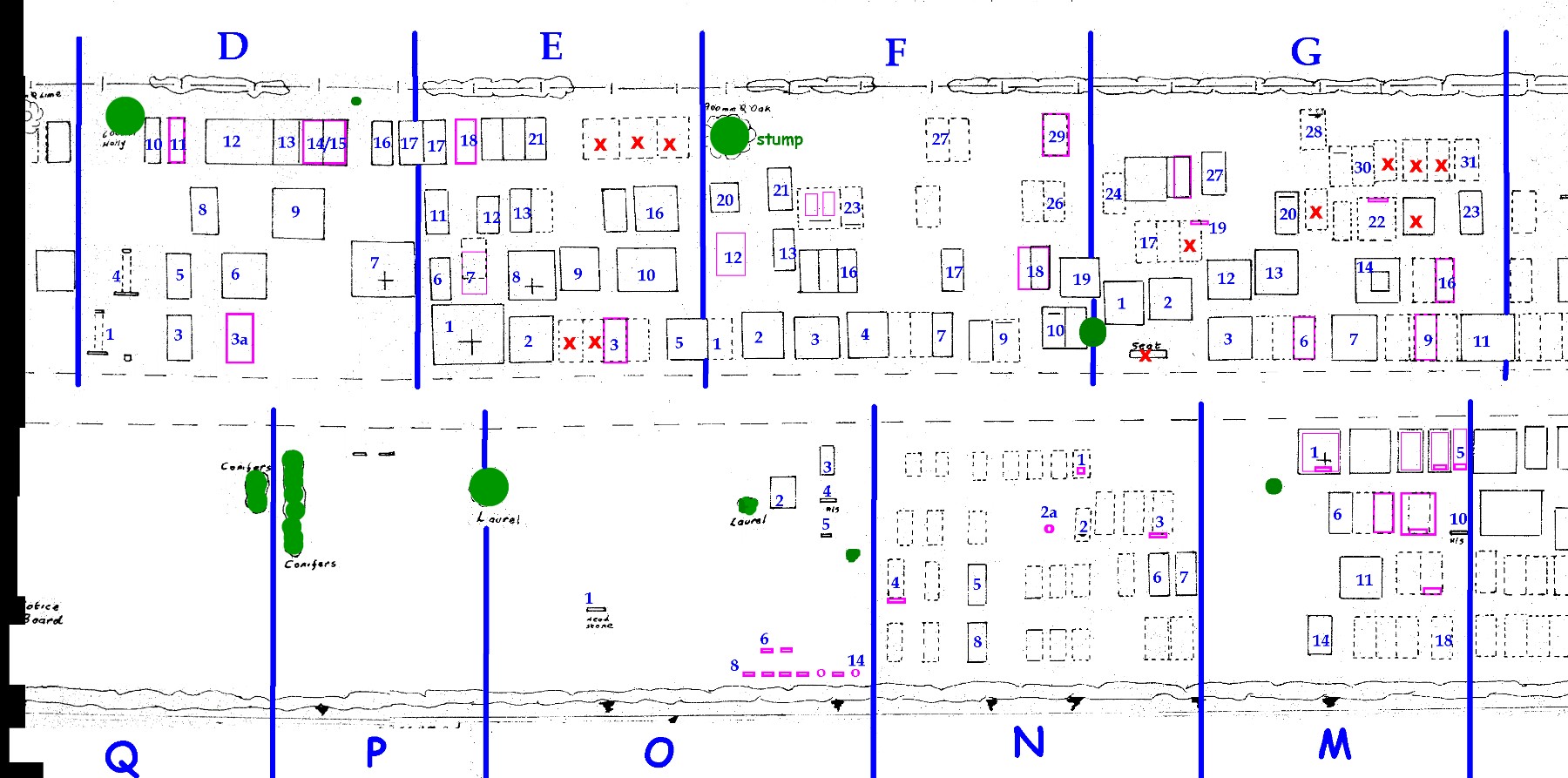 I divided the area into sections, and numbered the graves in each, and coded what there is to see, so if you have the number and the plan you should be able to find the grave (unless Mother Nature has done her thing!).