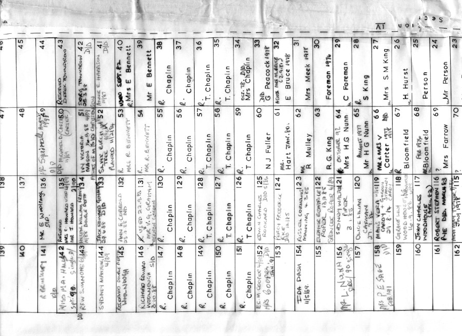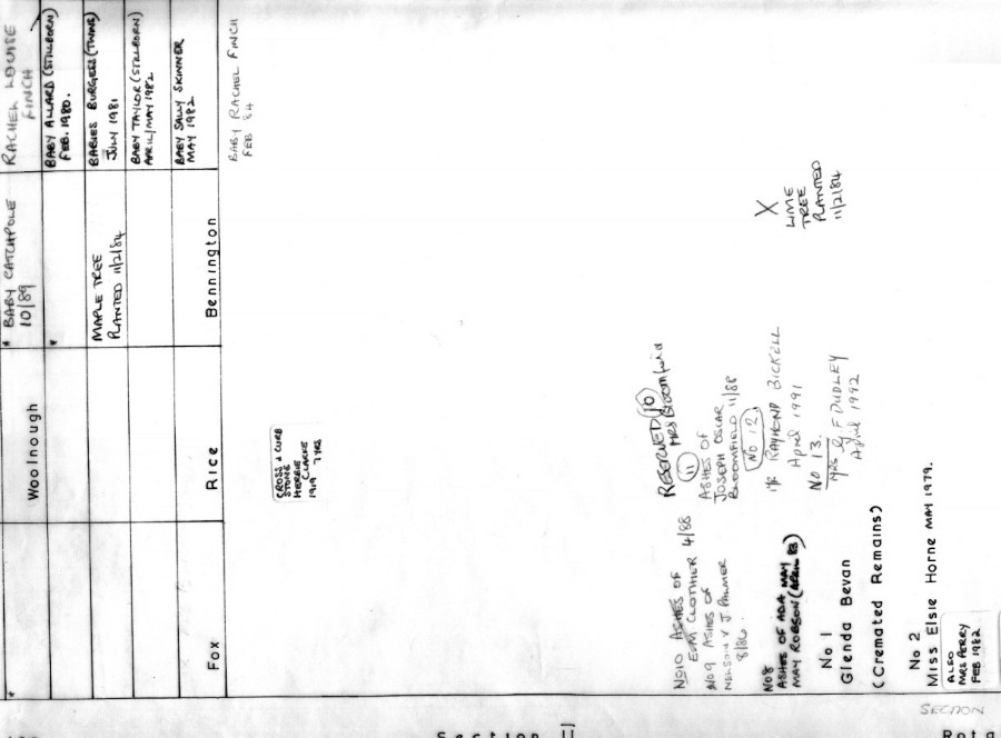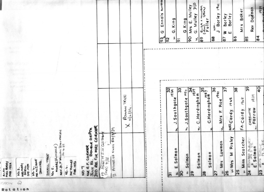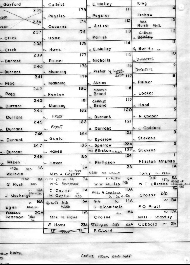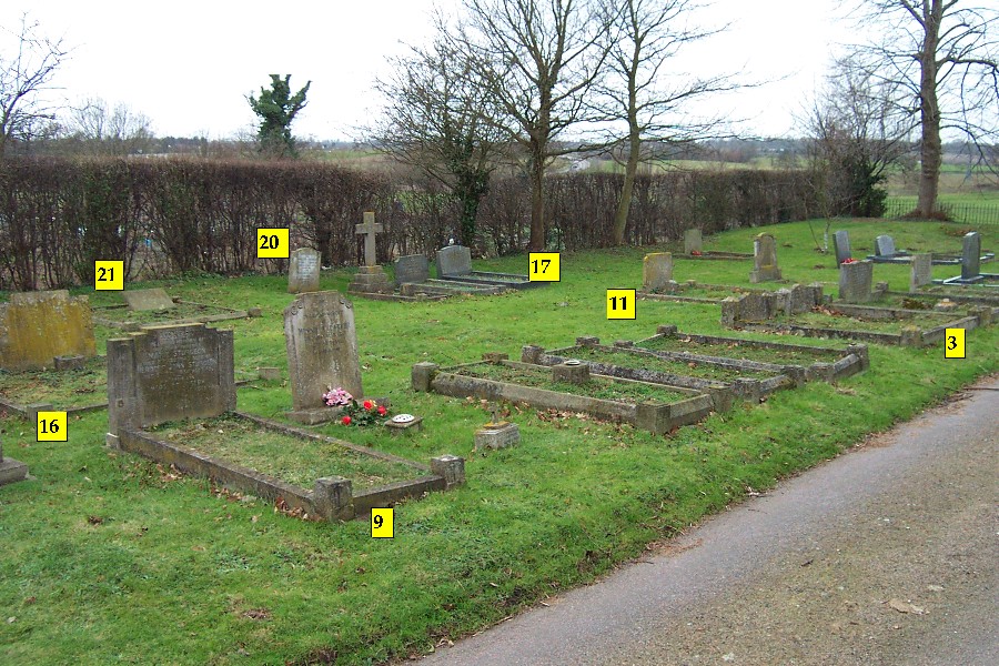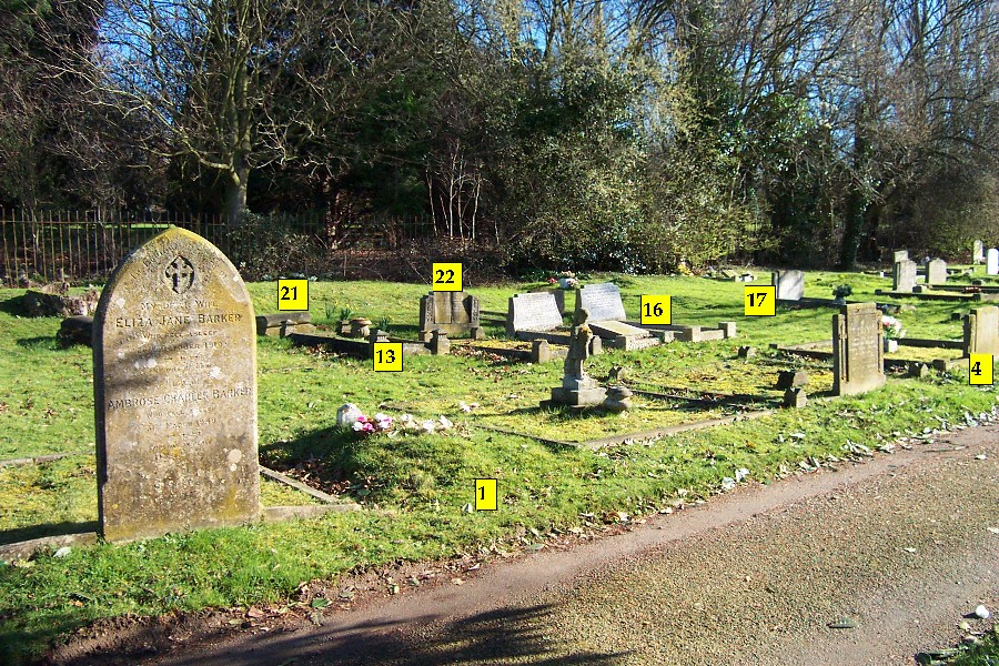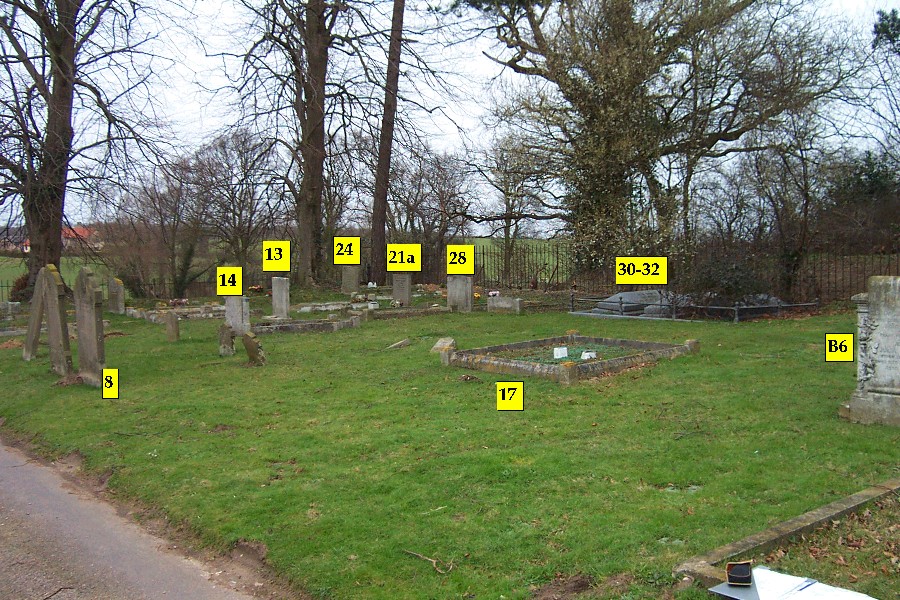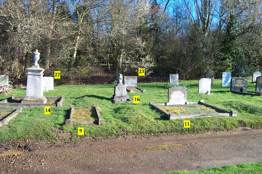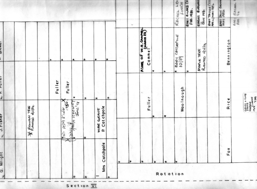 I divided the area into sections, and numbered the graves in each, and coded what there is to see, so if you have the number and the plan you should be able to find the grave (unless Mother Nature has done her thing!).
