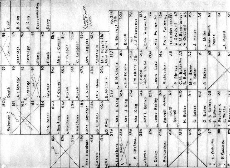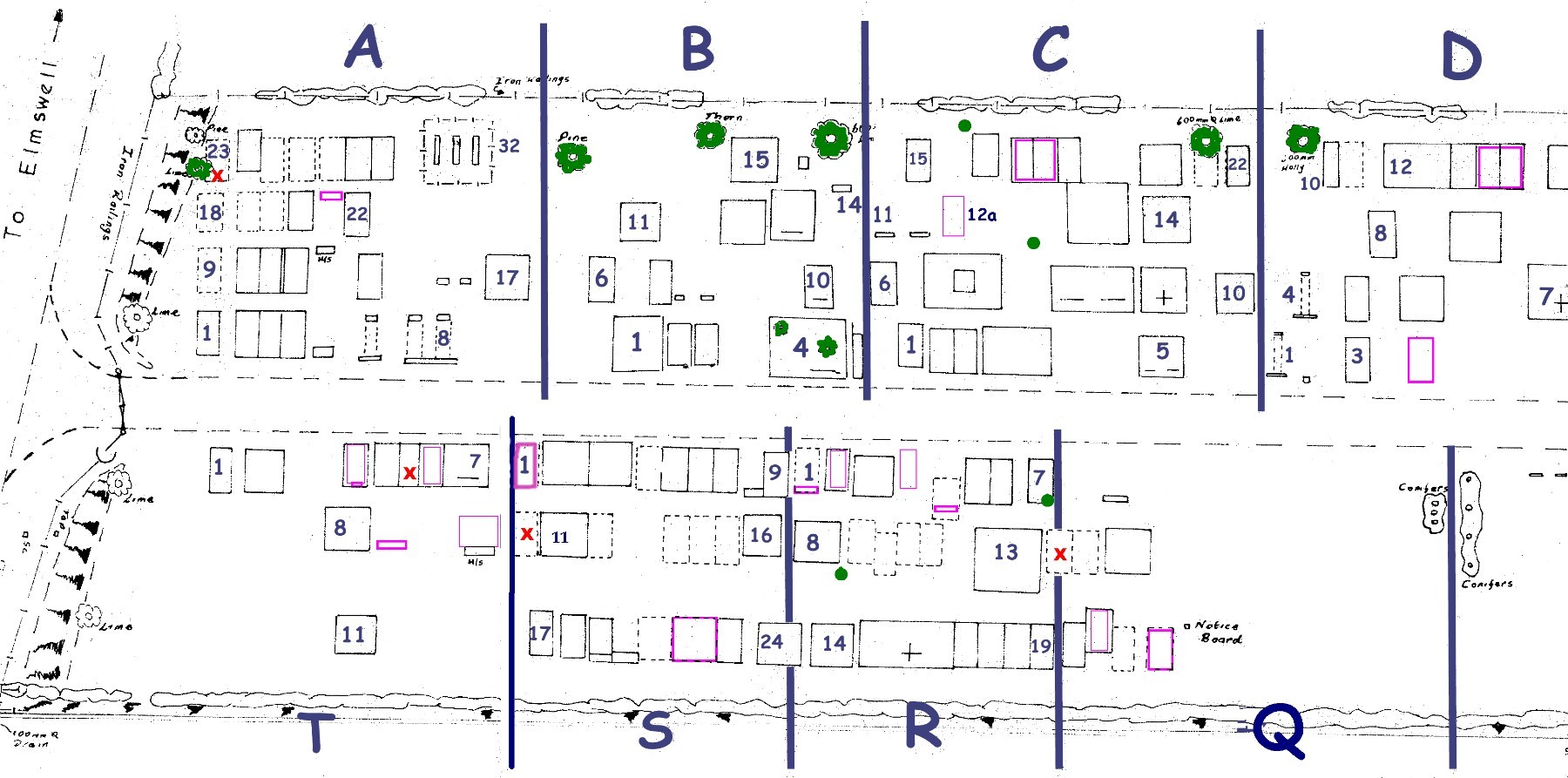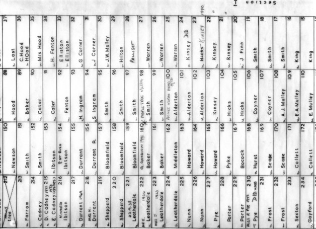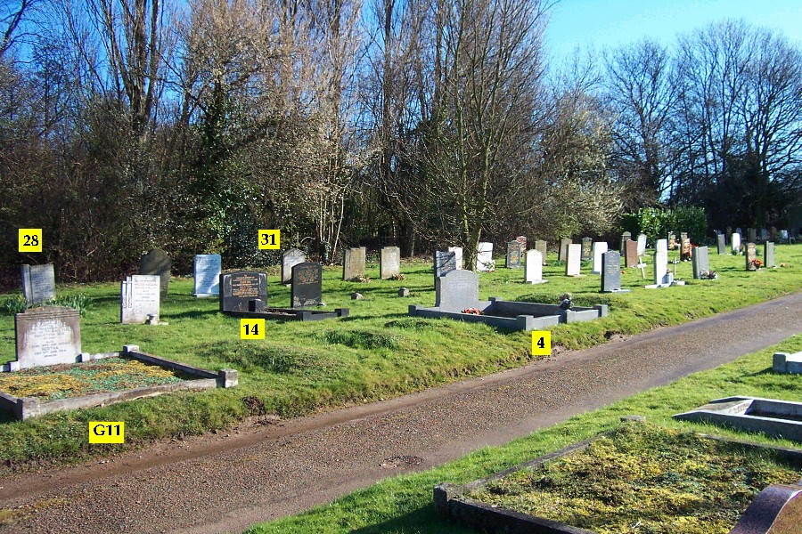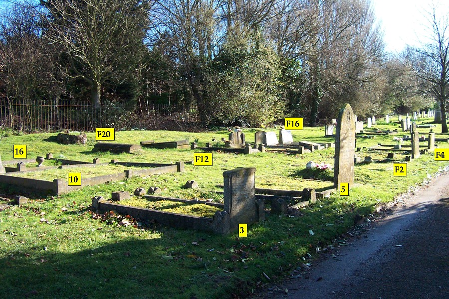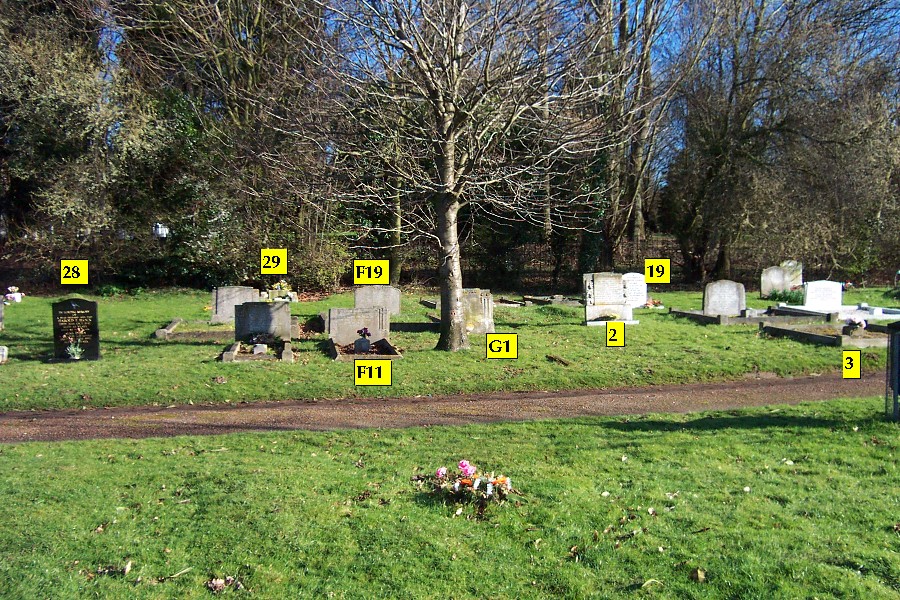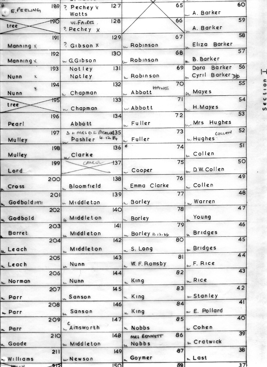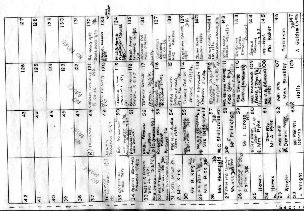 If you start at the entrance, you’ll pass sections A to I on your left, the graves being numbered from west to east, first the front row then the second, third, fourth; section J is on its own in the new field, then K to T are on the south side as you make your way back to the entrance.