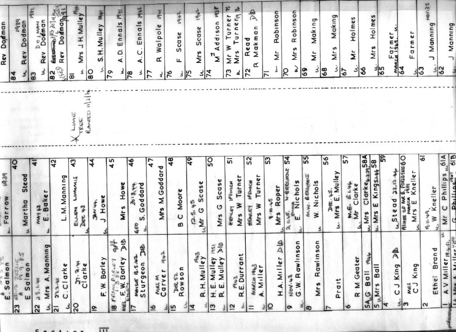 Welborn (Holborn?) | John | 1941 | 79 | Ruth Ellen | 85? | R18 | III | 88 | ||||